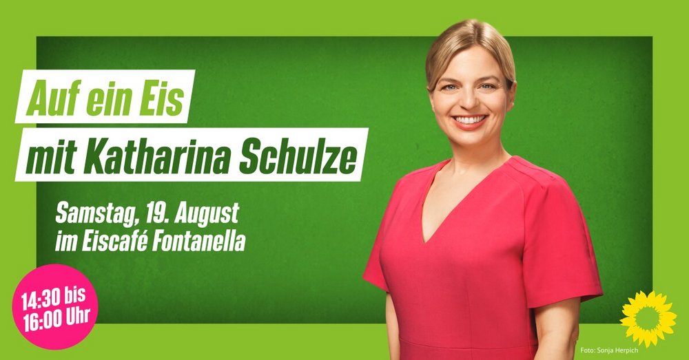 Komm in die Passauer Fußgängerzone und unterhalte dich bei einem Eis mit der Grünen-Spitzenkandidatin für die Landtagswahl, Katharina Schulze! Wir treffen uns im Eiscafé Fontanella.