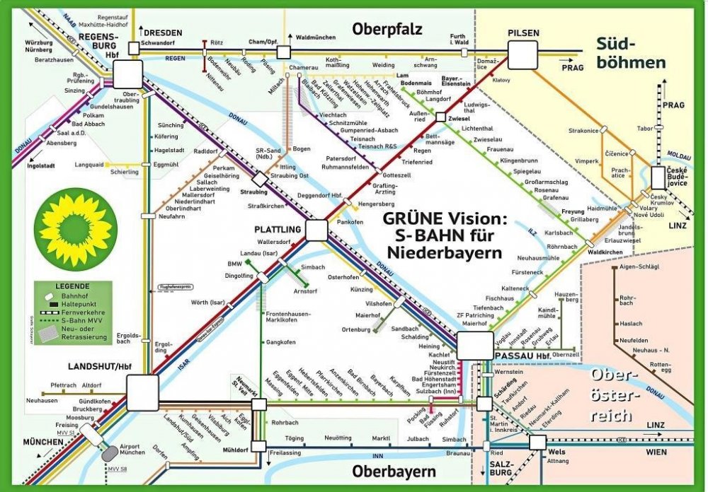 Wenn er auf das Bahnnetz der Region schaut, wird für Toni Schuberl nur ein "Mangelzustand" sichtbar. "Während in München Milliarden in Bahn-Prestige-Projekte fließen, werden bei uns nur Straßen gebaut. Mit dieser rückschrittlichen Politik schaffen wir mehr Verkehr und Emissionen in unseren immer heißer werdenden Innenstädten, lassen die Dorfkerne ausbluten und schwächen die Verkehrsinfrastruktur." Der Landtagsabgeordnete der Grünen moniert zudem, dass aktuell sogar betriebsfähige Bahnstrecken durch die Staatsregierung nicht bestellt und bestehende Linien nicht saniert würden. Der Passauer Parlamentarier gibt sich mit dem Ist-Zustand nicht zufrieden. Er legt ein Konzept für ein stark verbessertes Bahnnetz nach Vorbild einer S-Bahn für Niederbayern vor. Die niederbayerischen Abgeordneten der Grünen MdL Rosi Steinberger und MdB Erhard Grundl unterstützen den Vorstoß ihres Parteikollegen.