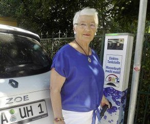 Auf dem Foto oben: Die Initiatorin des E-Mobil-Frauentreffens beim Aufladen ihres „E-Flitzers“ an einer Ladesäule in Traunstein. So wie dort ist es inzwischen an den zunehmend mehr werdenden „Strom-Zapfäulen“ möglich, das E-Mobil mit regenerativem Strom aufzuladen. Das deshalb wichtig, darauf legt Halo Saibold großen Wert, weil bei E-Autos, die mit herkömmlichen „Atomstrom“ betrieben werden, lediglich der Teufel mit dem Beelzebub ausgetrieben wird und die mit der Verkehrswende untrennbar verbundene Energiewende ad absurdum geführt wird.